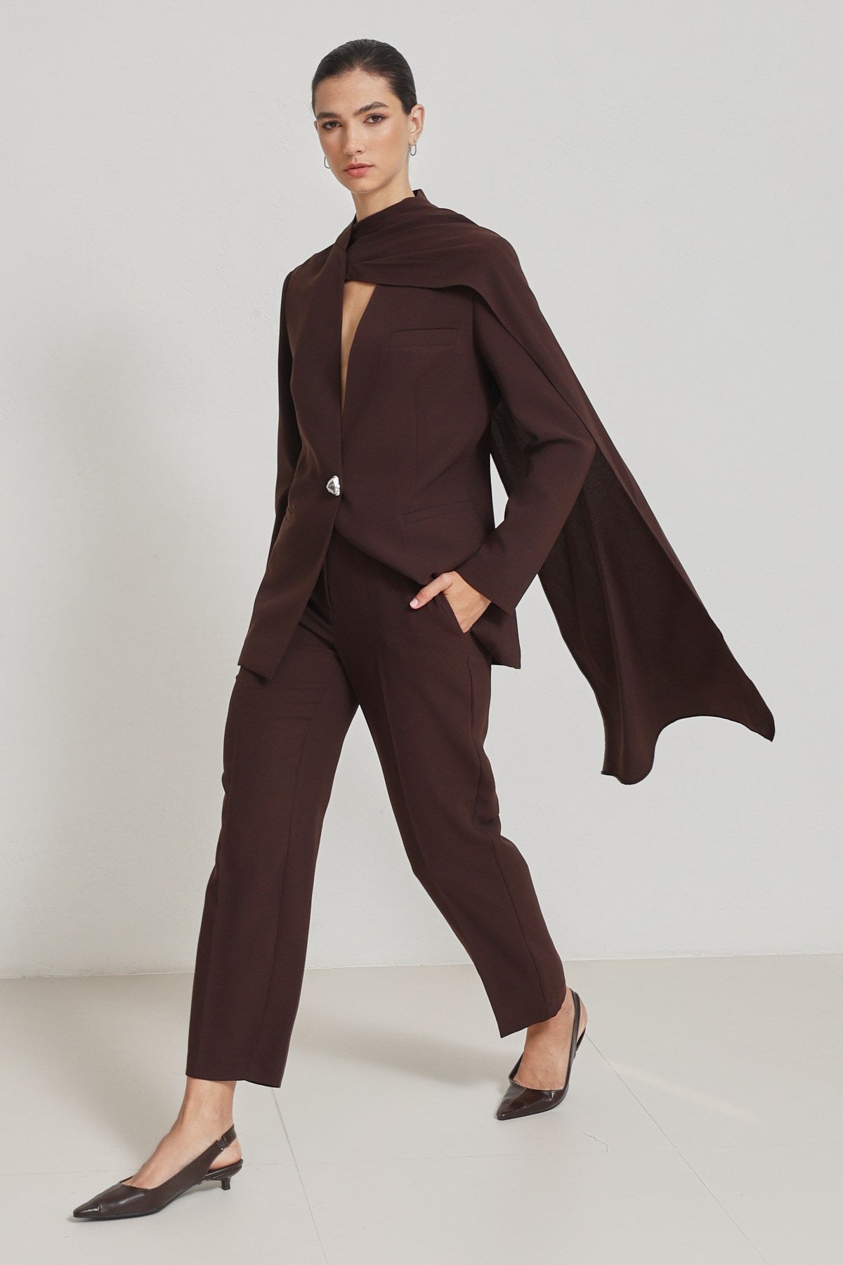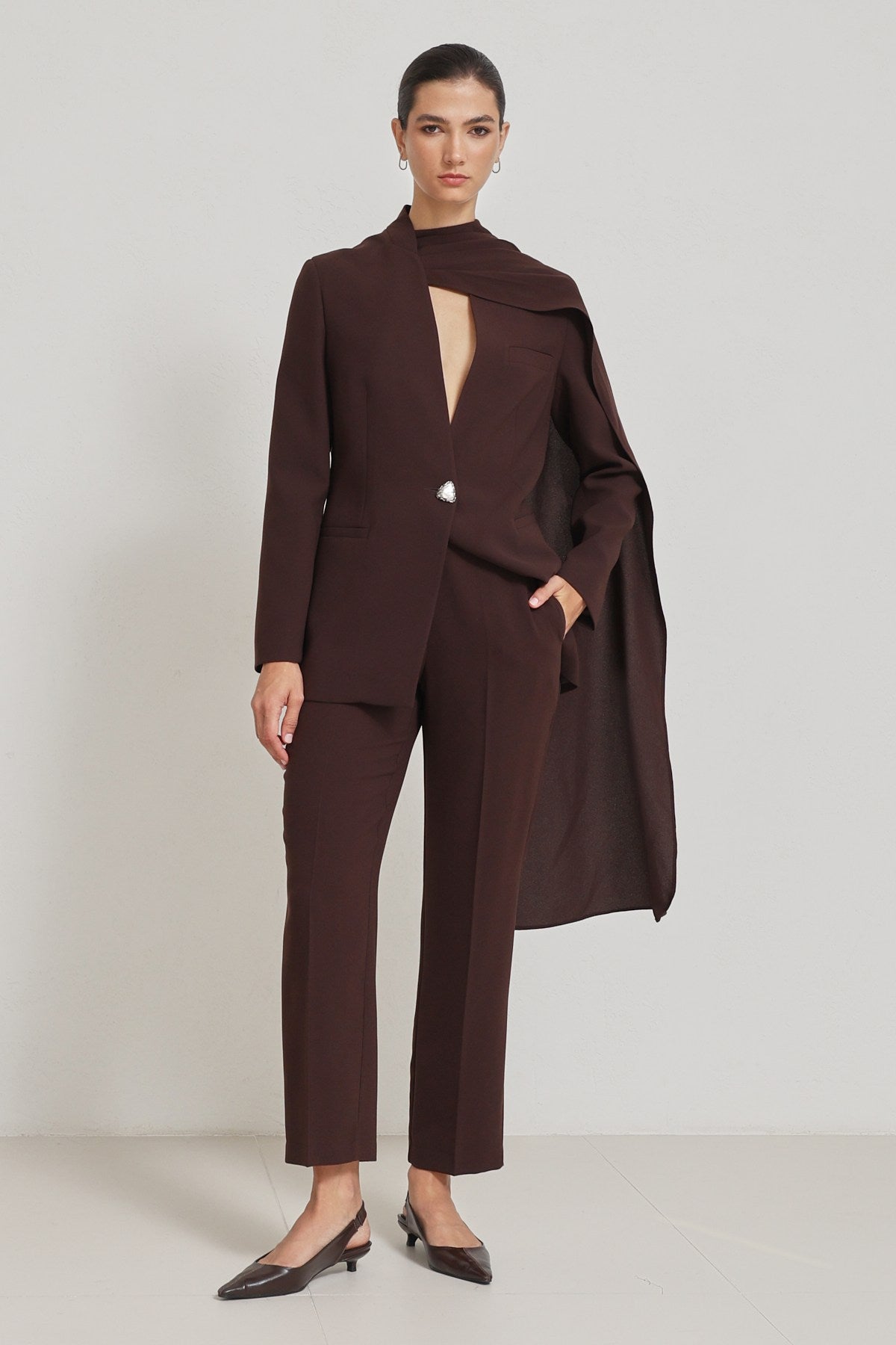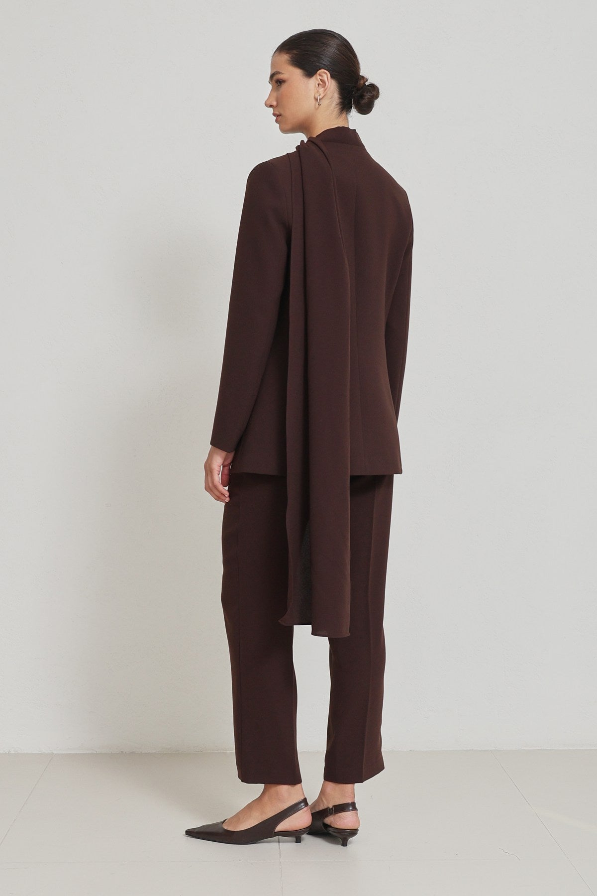 Blazer-Set mit Schal-Detail schokobraun