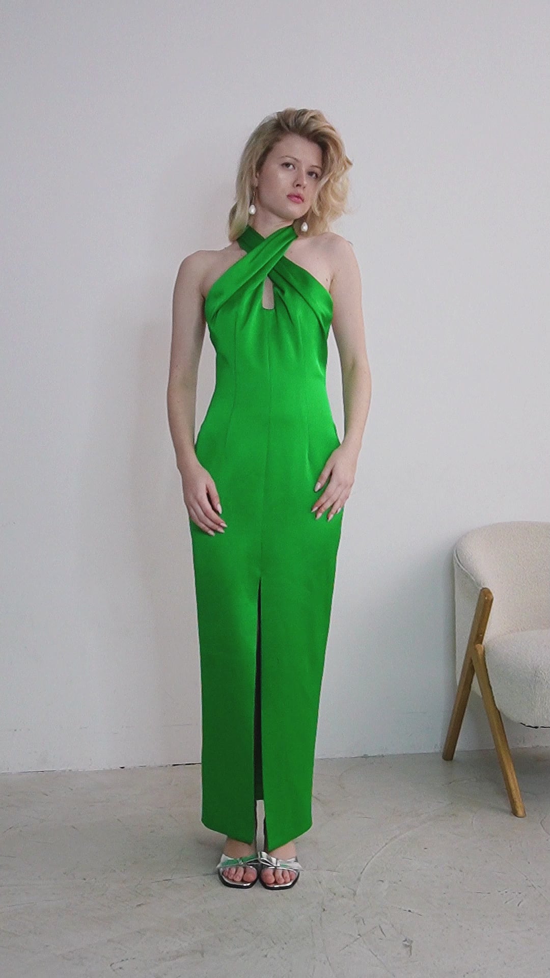 Neckholder-Midikleid aus Satin