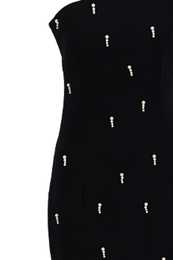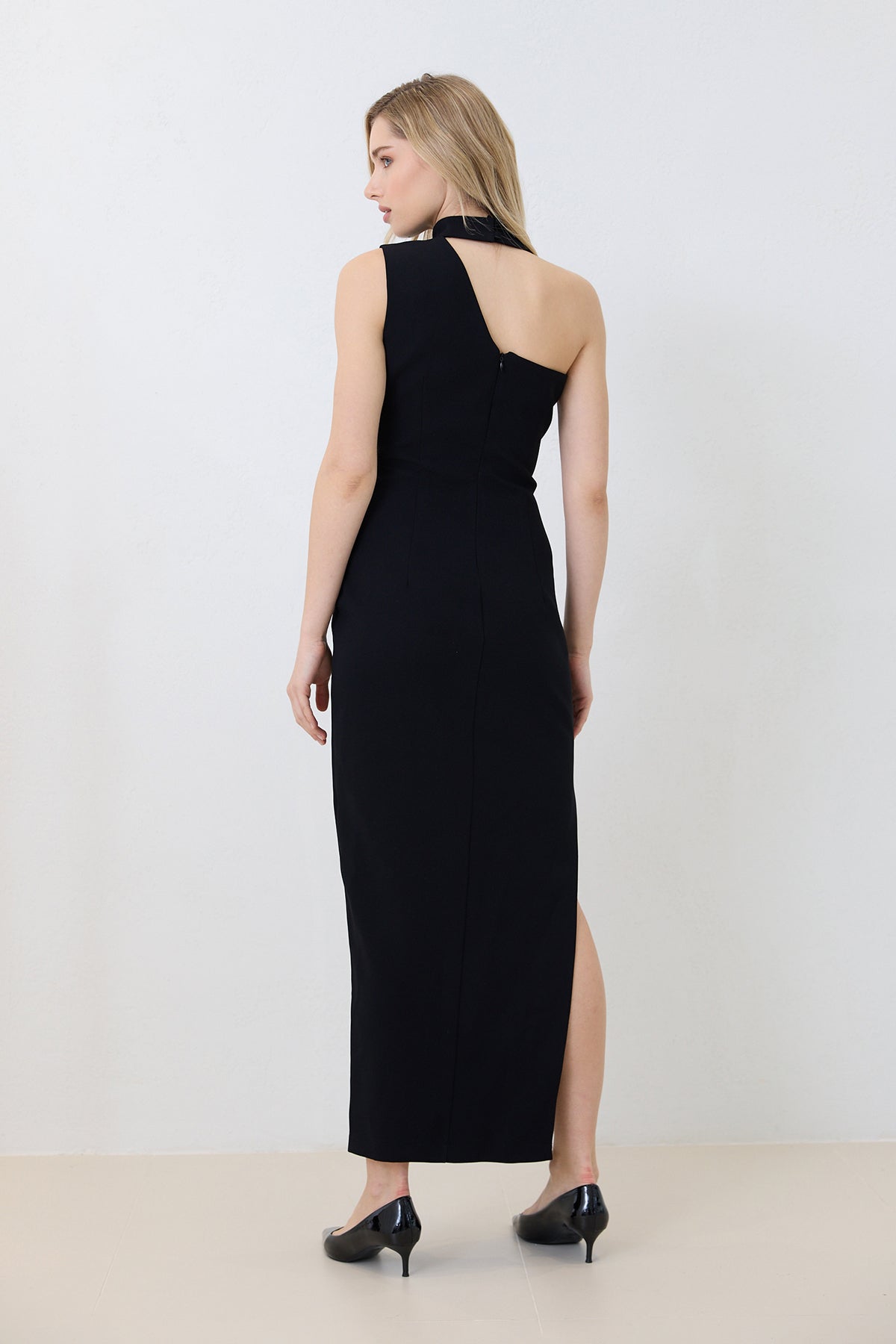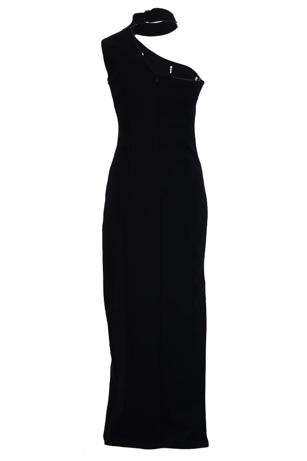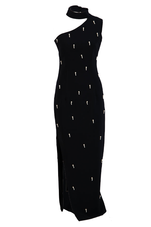 One-Shoulder Abendkleid Schwarz mit Perlen